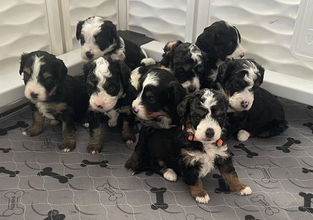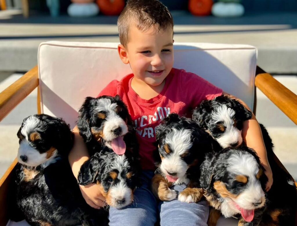 Our family raises adorable Tiny, Mini, and Standard Bernedoodle puppies. We provide our puppies with loving care from day #1 and ensure the puppies stay healthy, allowing us to present you with a happy, active puppy dog pal. We are best at producing Tri-colored Mini and Standard Bernedoodles and our puppies make great companions and playmates.